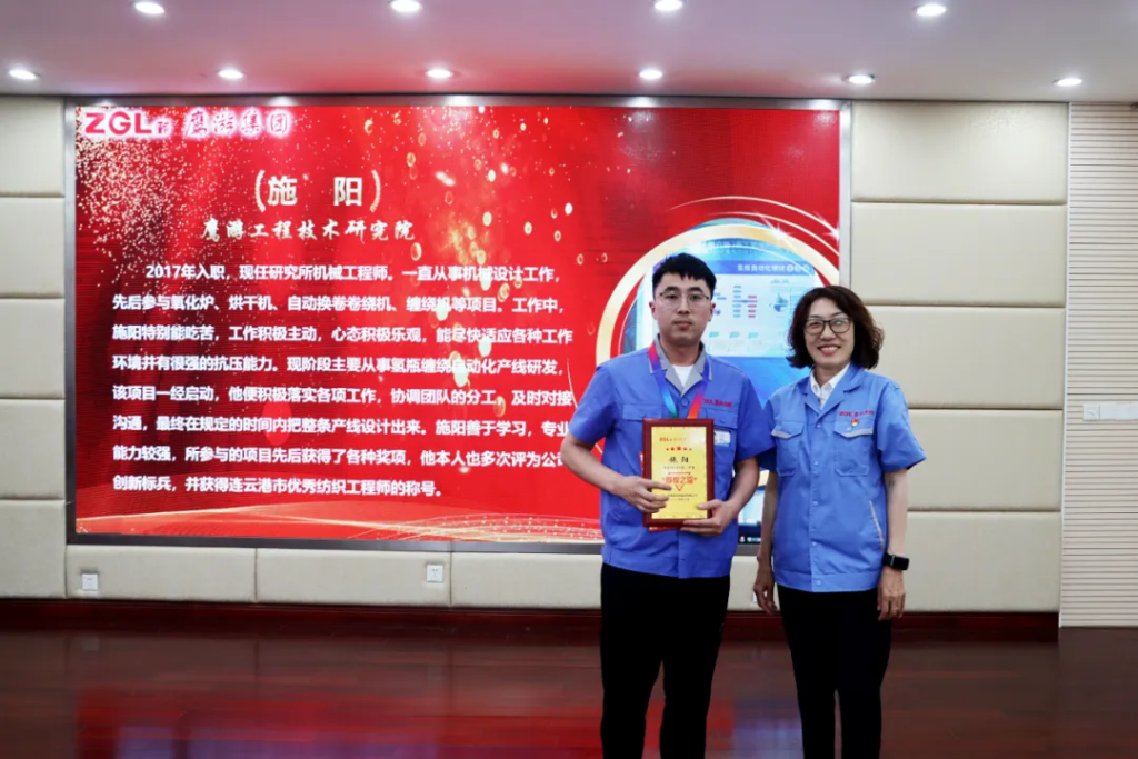 施陽,一直從事機械設計工作,他先后參與氧化爐、烘干機、自動換卷卷繞機、纏繞機等項目。工作中,施陽特別能吃苦,工作積極主動,心態積極樂觀,能盡快適應各種工作環境并有很強的抗壓能力。現階段主要從事氫瓶纏繞自動化產線研發,該項目一經啟動,他便積極落實各項工作,協調團隊的分工,及時對接溝通,最終在規定的時間內把整條產線設計出來。施陽善于學習,專業能力較強,所參與的項目先后獲得了各種獎項,他本人也多次評為公司創新標兵,并獲得連云港市優秀紡織工程師的稱號。
